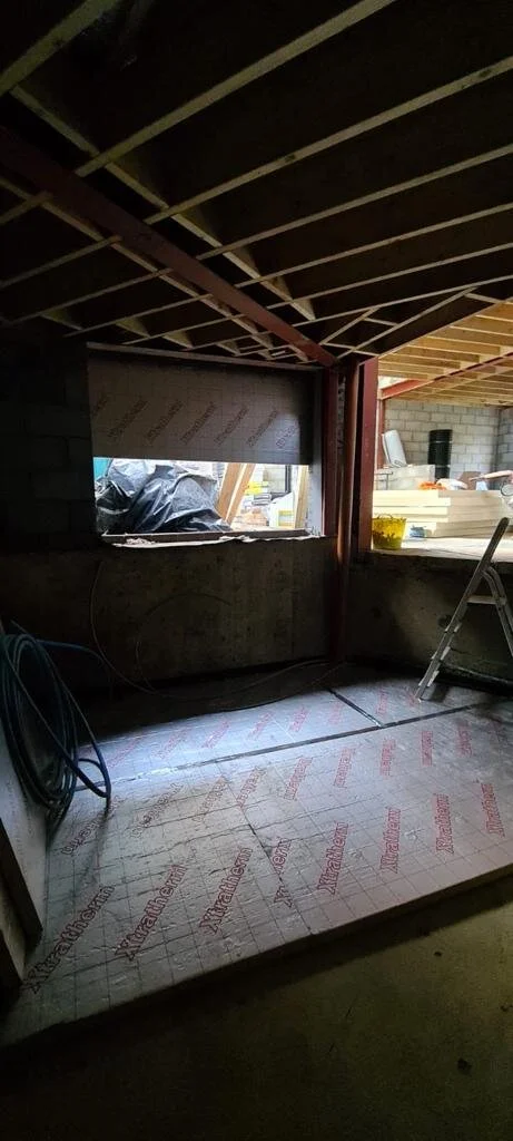 So we’ve had to go back to the drawing board (literally)! We pulled back out the plans, a roll of tracing paper and some black markers, and got to work. Lanre took the new ideas back to site (luckily I could avoid the cold dark trip to site as I had a new job and work calls to attend to) and marked out the new location of the units.